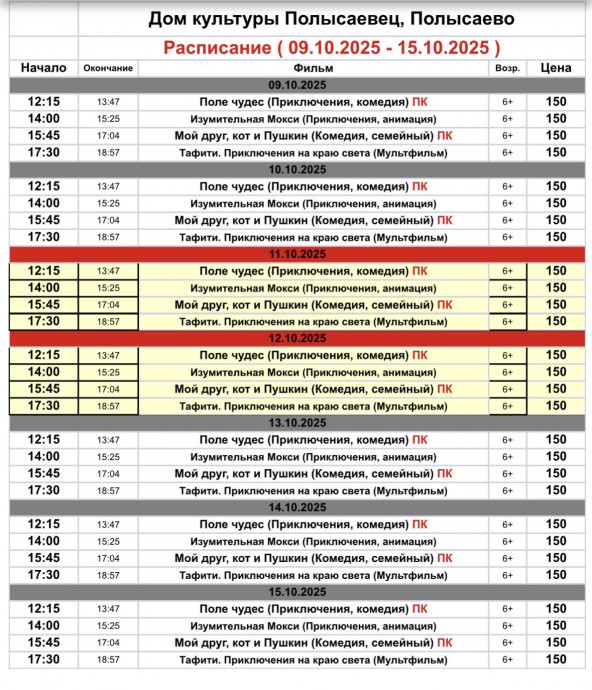 Репертуар кинозала с 9-15 октября