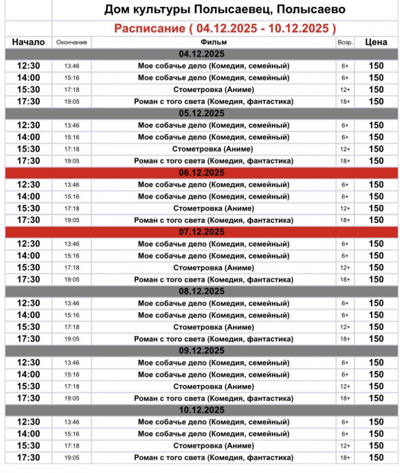 Репертуар кинозала ДК «Полысаевец» 4 ноября – 10 декабря
