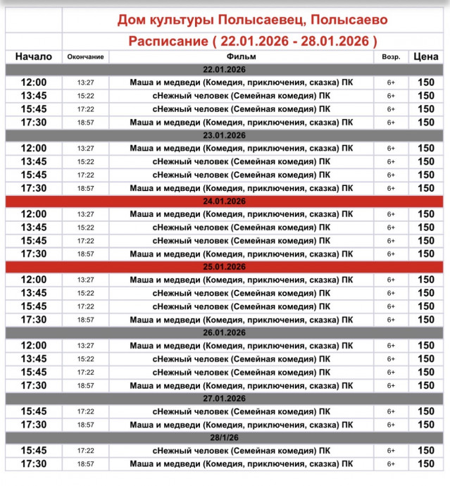 Репертуар кинозала ДК «Полысаевец»22–28 января