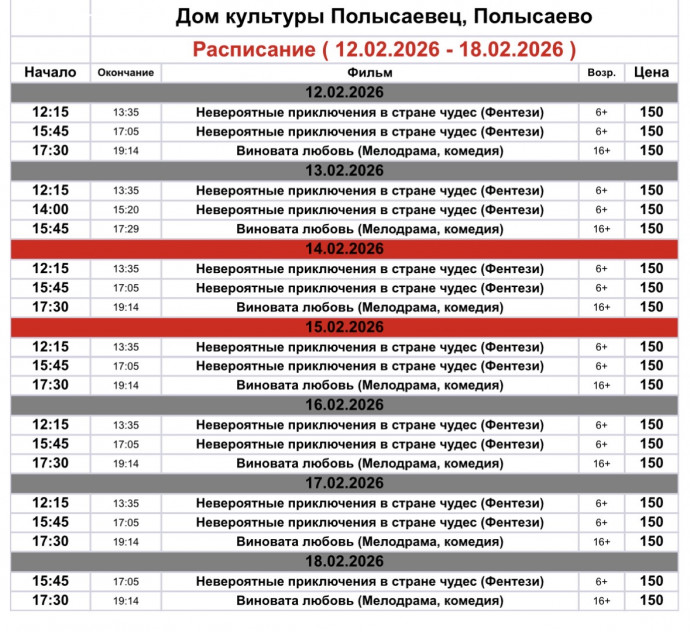 г. Полысаево, ул. Токарева, 6а Билеты — от 150 рублей 12–18 февраля — пусть февраль будет наполнен чувствами!