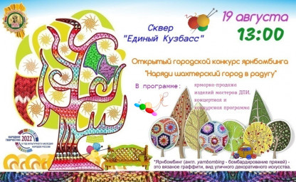 Открытый городской конкурс ярнбомбинга Приглашаем горожан и гостей города на праздничное мероприятие, открытый городской конкурс ярнбомбинга "Наряди шахтерский город в радугу" в рамках празднования областного дня шахтера. 16.08.2022 06:35