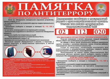 Памятка по антитеррору. В преддверии учебного года , нужно обратить особое внимание противодействию терроризма.Нужно акцентировать внимание детей и взрослых на необходимость проявления бдительности. 25.08.2022 11:04