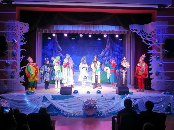 Первые зрители праздничного спектакля - «Новогоднее приключение в золотых песках» отправились в сказочное путешествие вместе с ёлочными игрушками Динь и Дзынь. Они противостояли чужеземному коварному змею, который прилетел из знойного Египта, чтобы лишить ребят новогодней сказки, превратив всё в пустыню, отважные герои волшебного леса с помощью взаимовыручки и дружбы спасают праздник.