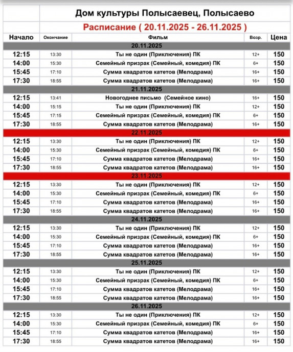 Репертуар кинозала ДК «Полысаевец» с 20 по 26 ноября!