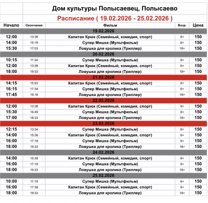 #ДКПолысаевец #КинозалПолысаево #Кино150 #ПушкинскаяКарта #СуперМишка #КапитанКрюк #ЛовушкаДляКролика #ФевральскоеКино