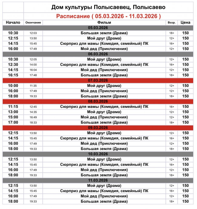 Репертуар кинозала ДК «Полысаевец» 5–11 марта